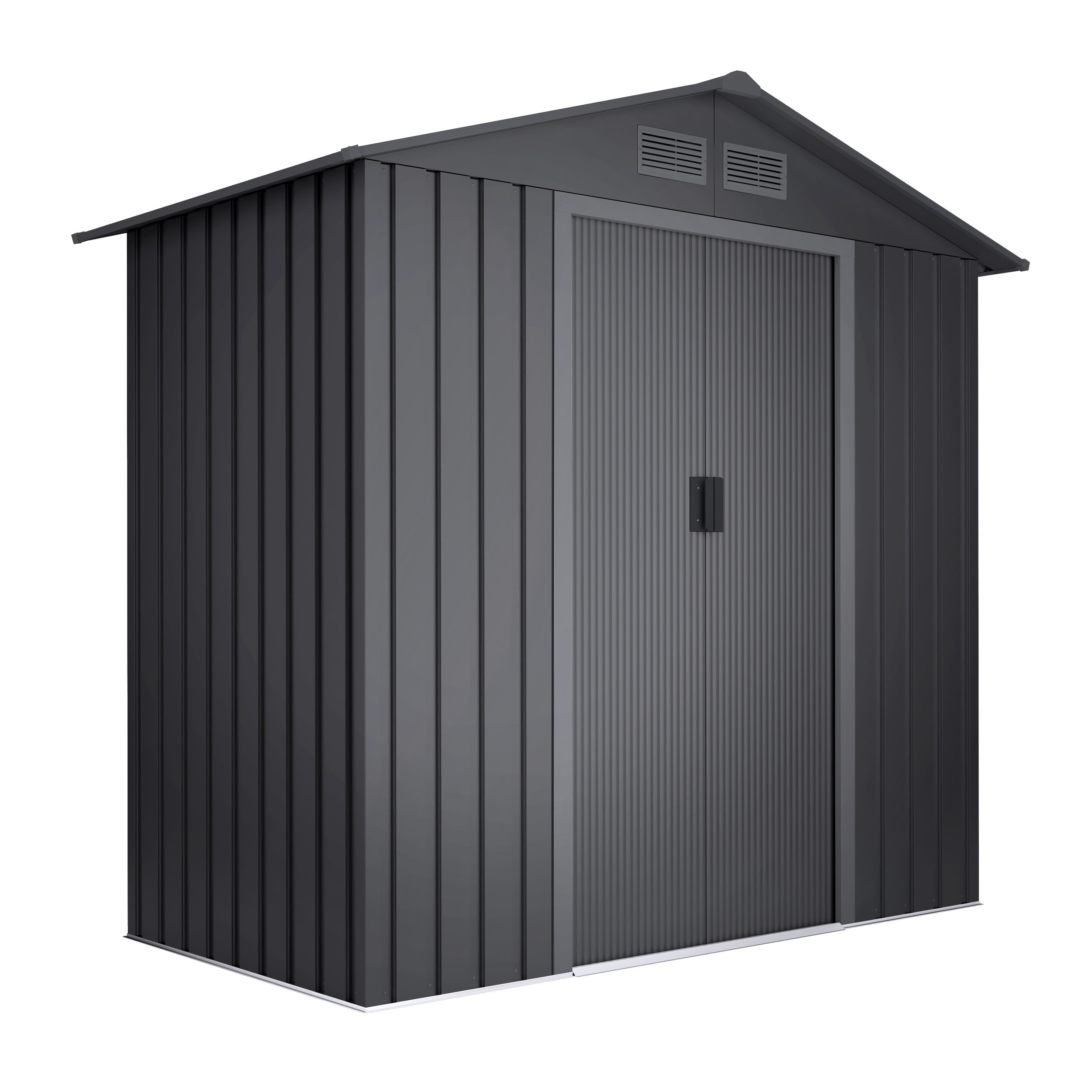 Su gran resistencia al exterior hace que sea perfecta para mantener ordenadas herramientas de mediano tamaño, mobiliario de poco volumen y accesorios de jardín como cojines, plantas u otros utensilios. Cuenta con techo a dos aguas para facilitar la evacuación del agua, puerta corredera de fácil acceso y respiraderos para proporcionar una continua ventilación.