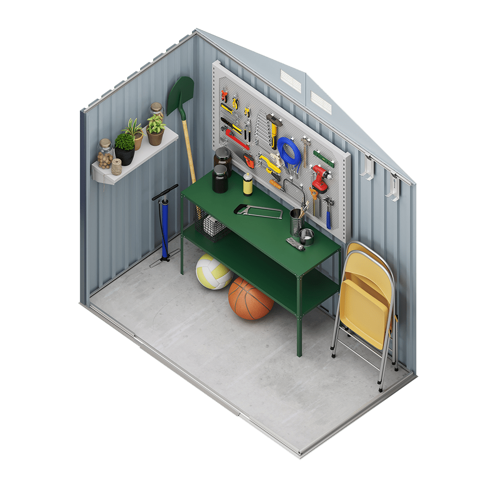 Perfecta para mantener ordenadas herramientas de mediano tamaño, mobiliario de poco volumen y accesorios de jardín como cojines, plantas, sacos de tierra u otros utensilios