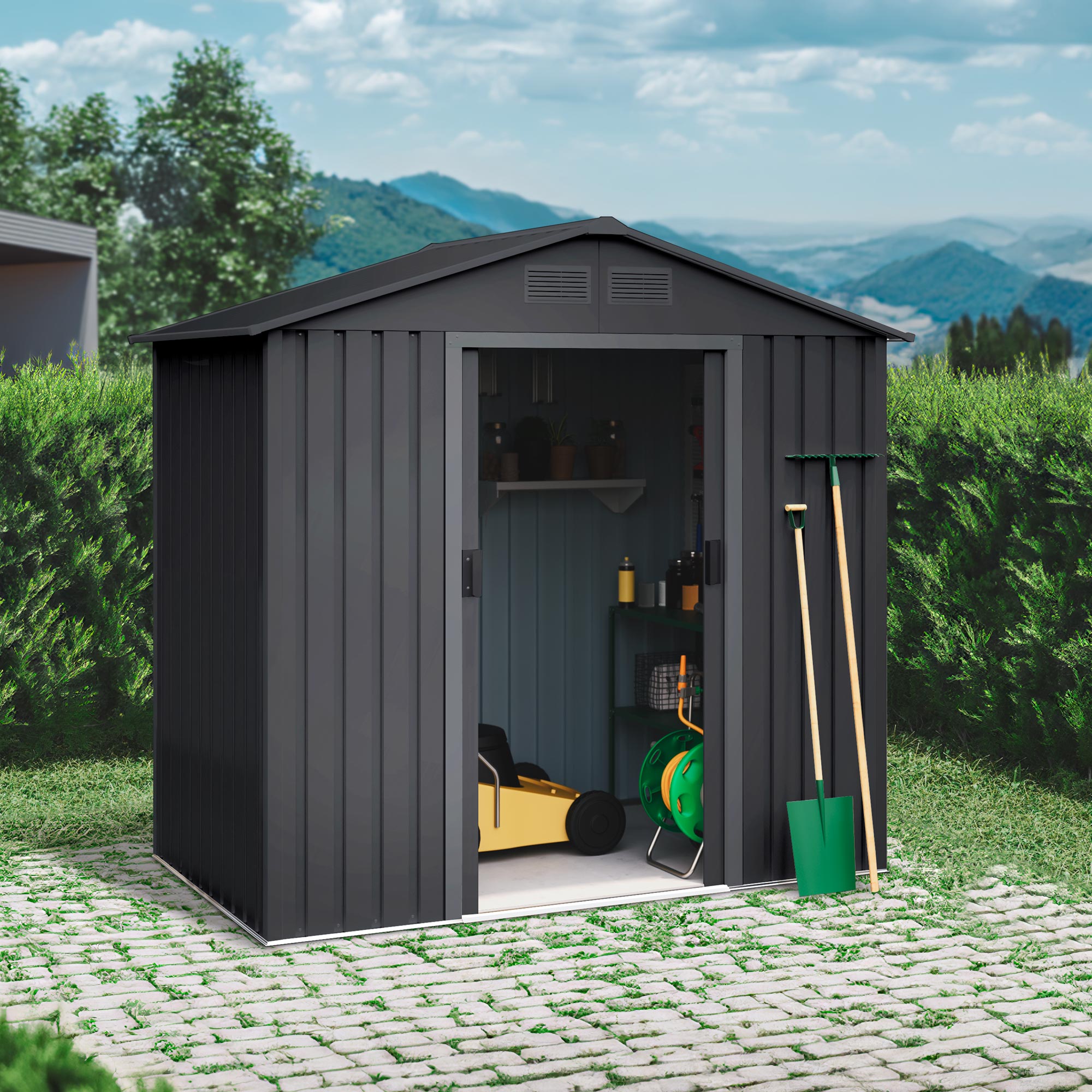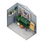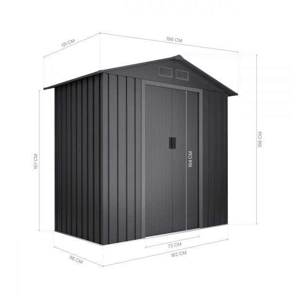 Su gran resistencia al exterior hace que sea perfecta para mantener ordenadas herramientas de mediano tamaño, mobiliario de poco volumen y accesorios de jardín como cojines, plantas u otros utensilios. Cuenta con techo a dos aguas para facilitar la evacuación del agua, puerta corredera de fácil acceso y respiraderos para proporcionar una continua ventilación.