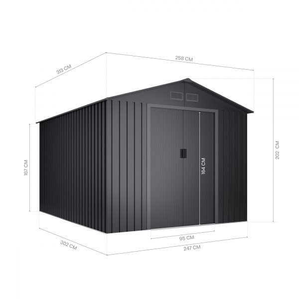 Caseta ideal para almacenaje de maquinaria grande de jardín, herramientas de mediano o gran tamaño, bancos de trabajo, barbacoas, escaleras o leña. Podrás usar tu caseta como refugio, trastero o convertirlo en una zona de trabajo u ocio. Cuenta con techo a dos aguas para facilitar la evacuación del agua, puerta corredera de fácil acceso y respiraderos para proporcionar una continua ventilación.