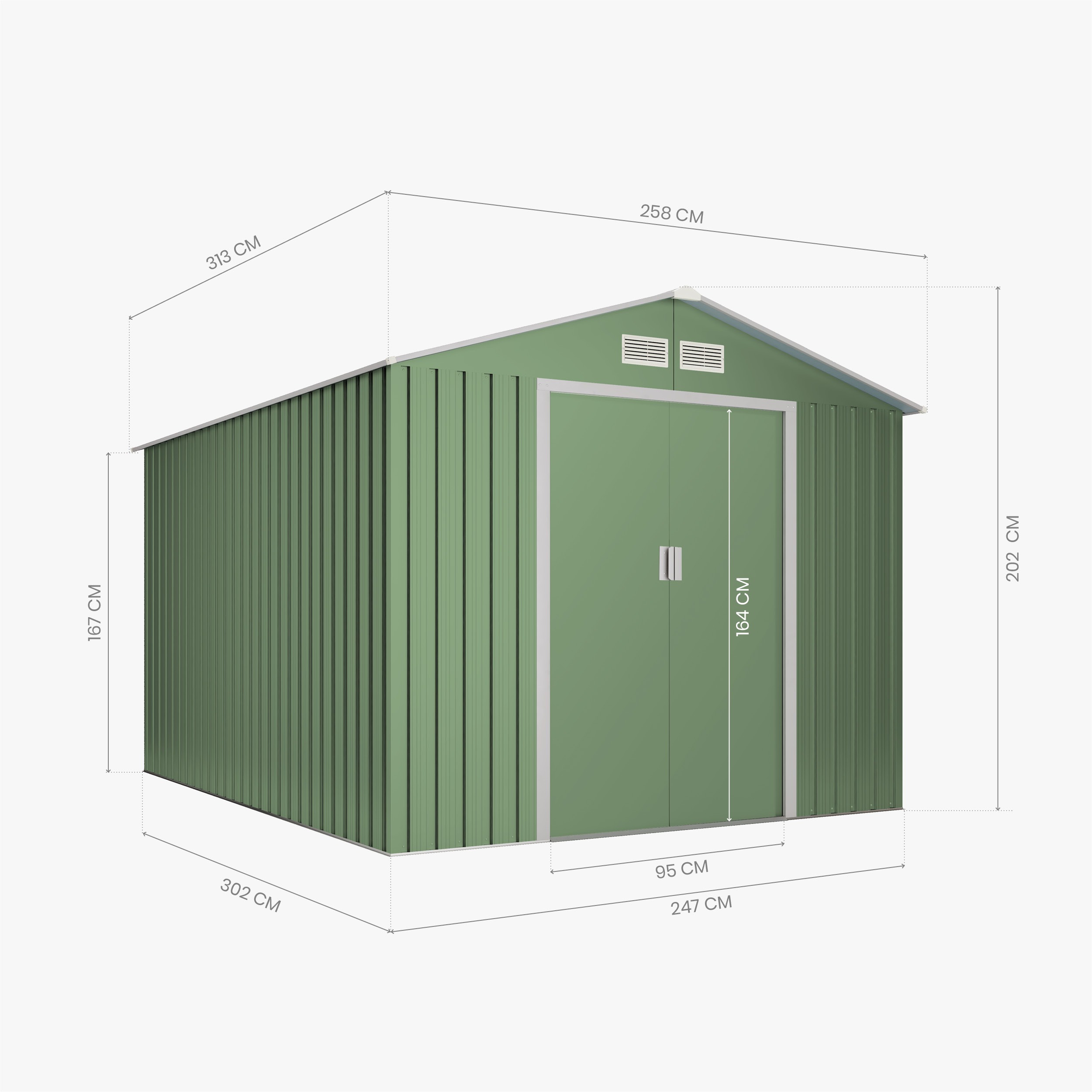 Caseta ideal para almacenaje de maquinaria grande de jardín, herramientas de mediano o gran tamaño, bancos de trabajo, barbacoas, escaleras o leña. Podrás usar tu caseta como refugio, trastero o convertirlo en una zona de trabajo u ocio. Cuenta con techo a dos aguas para facilitar la evacuación del agua, puerta corredera de fácil acceso y respiraderos para proporcionar una continua ventilación.