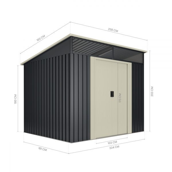 Ideal para el almacenamiento de bicicletas, utensilios de jardín, muebles, carretillas, cortacesped y demás herramientas de mediano tamaño. Incluye desagües traseros para recogida de agua y tragaluz de policarbonato delantero para la entrada de luz natural. Fabricado con materiales de alta calidad que hacen de la gama STARK una gama con alta durabilidad y resistencia.
