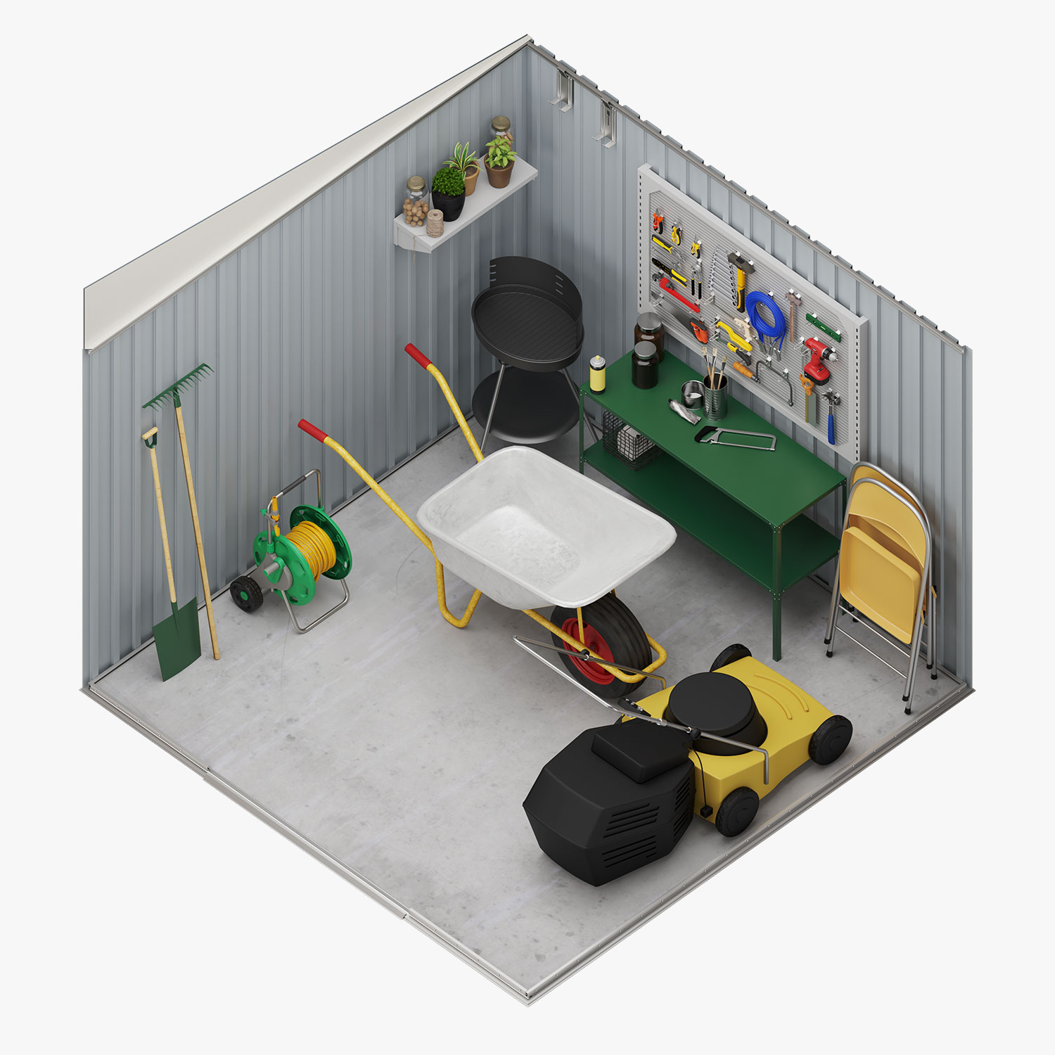 Ideal para elementos de mediano tamaño, como elementos del jardín, herramientas, o incluso organizar un pequeño taller u zona de trabajo.