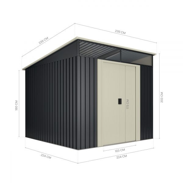 La caseta intermedia de la gama STARK tiene techo plano con inclinación para facilitar la evacuación del agua. Ideal para elementos de mediano tamaño, como elementos del jardín, herramientas, o incluso organizar un pequeño taller u zona de trabajo. Incluye desagües traseros para recogida de agua y tragaluz de policarbonato delantero para la entrada de luz natural. Fabricado con materiales de alta calidad que hacen de la gama STARK una gama con alta durabilidad y resistencia.
