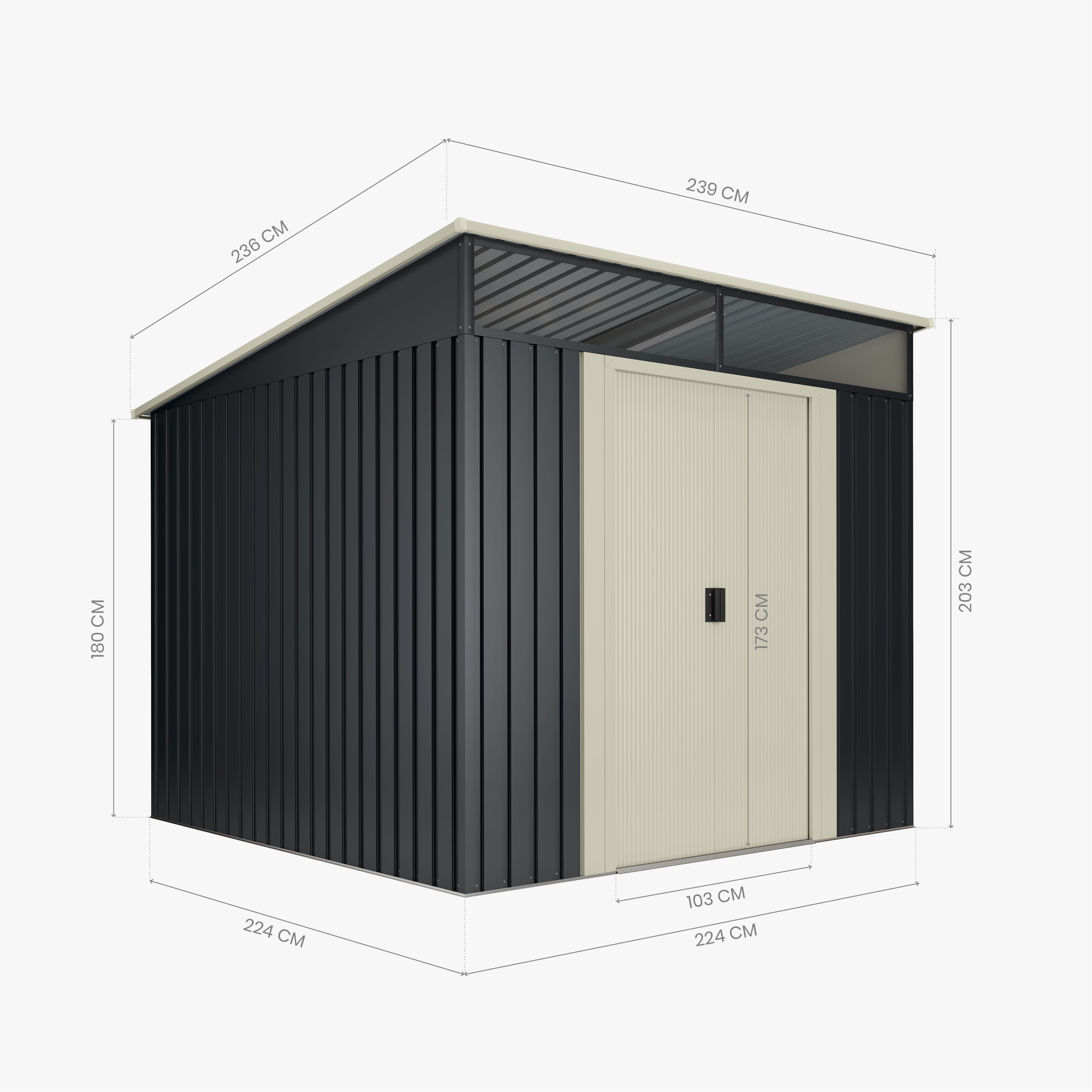 Medida exterior: 239 x 236 x 203 cm