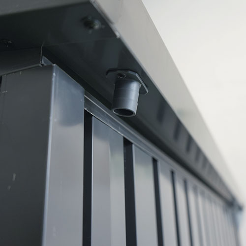 Incorpora desagües traseros para recoger el agua de la lluvia y poder utilizarla para el riego, limpieza, etc.